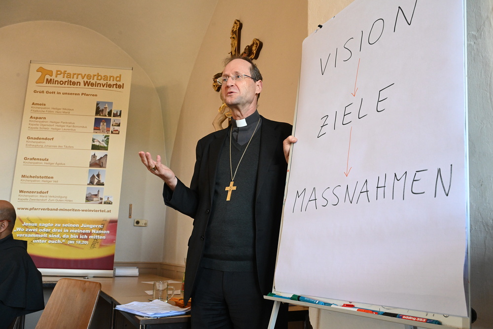 Der 5. April stand im Zeichen eines gemeinsamen Morgenlobs im Minoritenkonvent, Gesprächen mit Pfarrgemeinde- und Vermögensverwaltungsräten sowie einer Wanderung in Michelstetten.