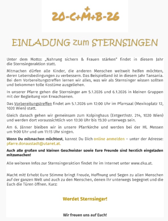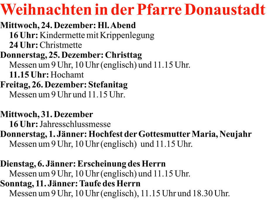 Neujahr (1.1): 15 Uhr (10.30 Uhr entfällt)